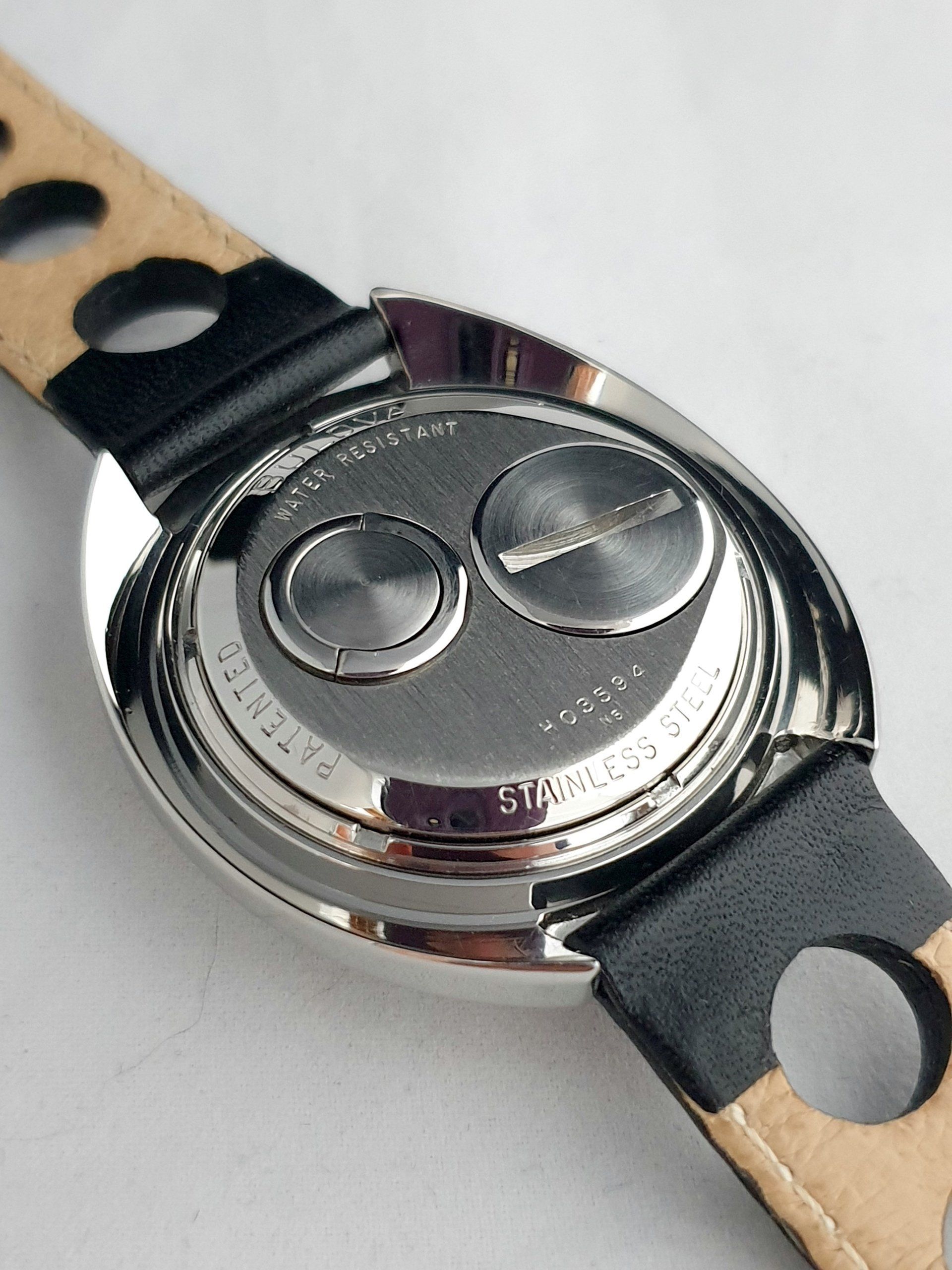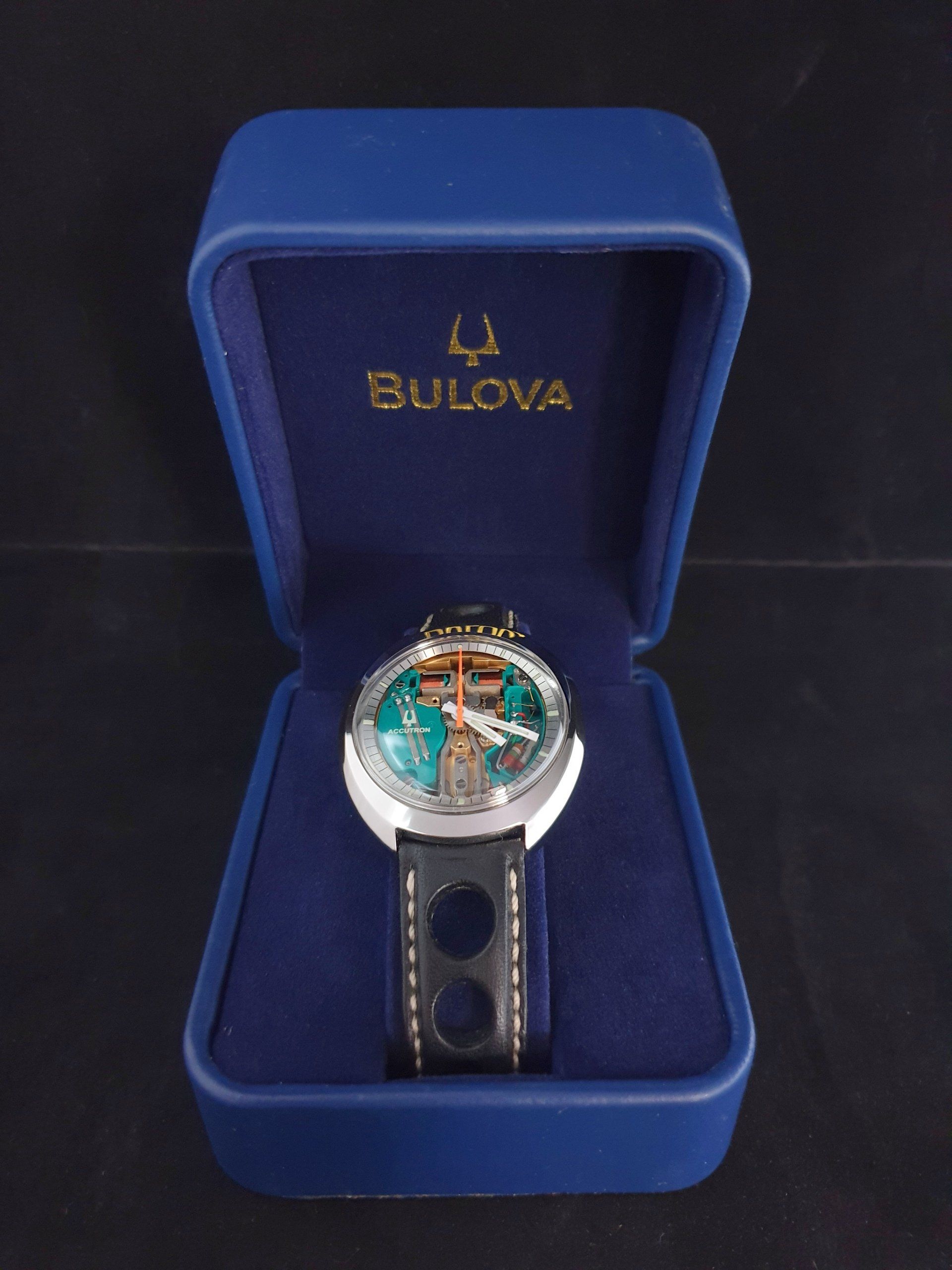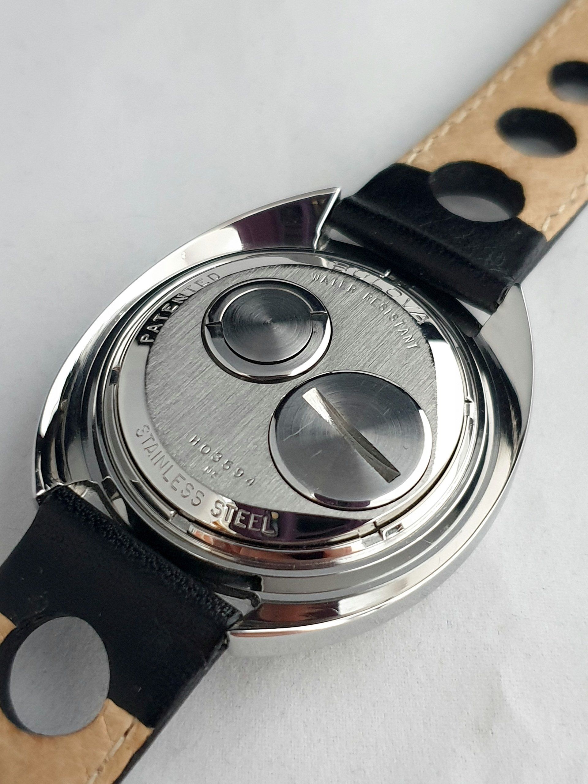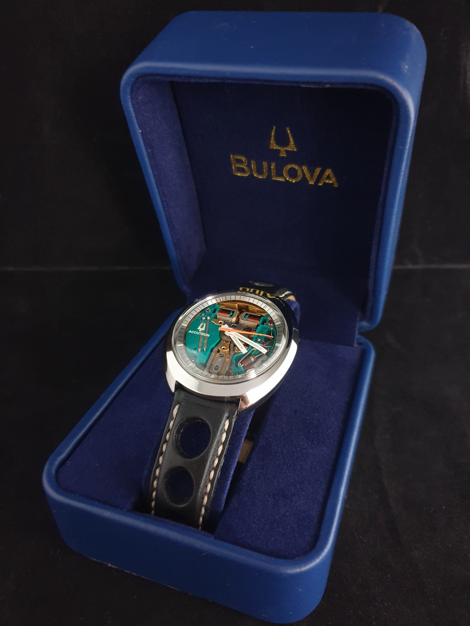 Aangesloten een goede kwaliteit zwart lederen "rally" band met originele Bulova sluiting.